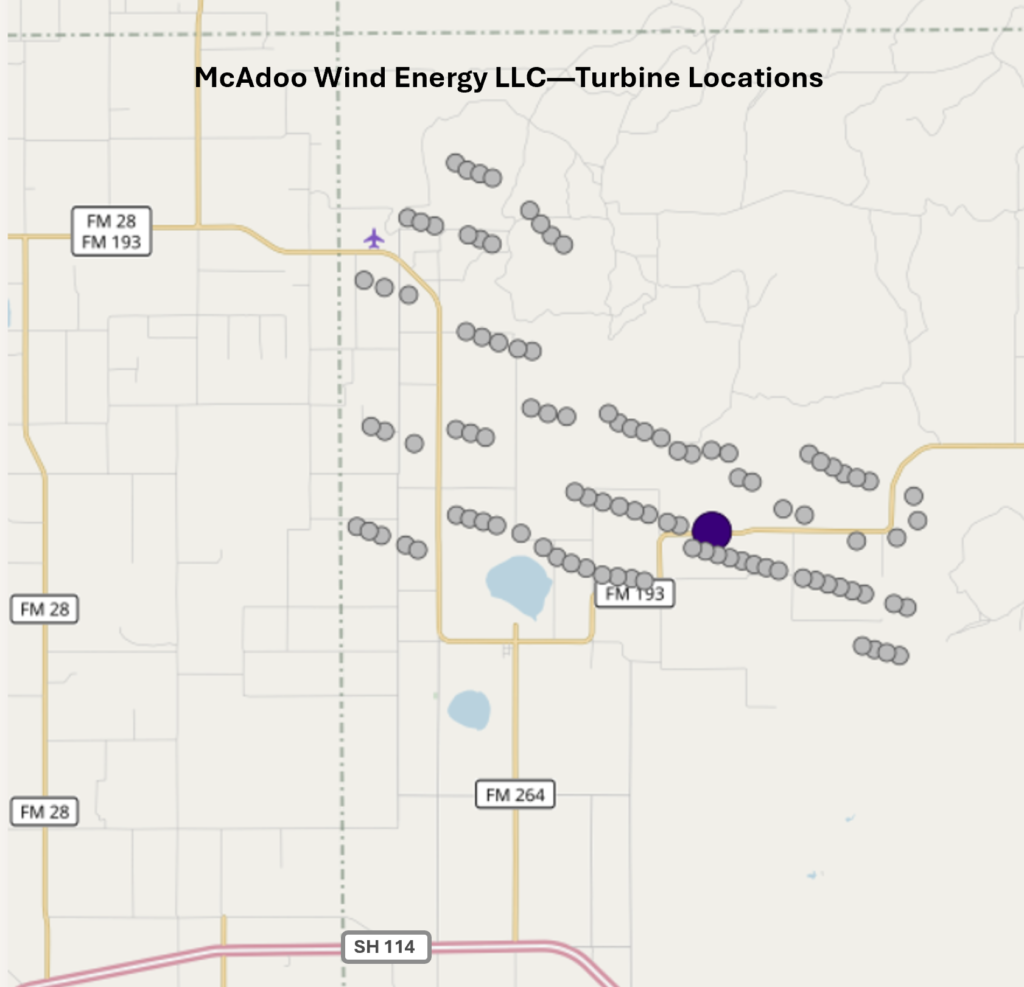 The Dept. of Energy uses a 1-7 scale to rank geographic areas according to their total wind power (a function of wind speed, over a given area), with higher rank equating to more wind power. McAdoo and Dickens County generally rank 3-4, with areas farther north in the Panhandle ranking higher.